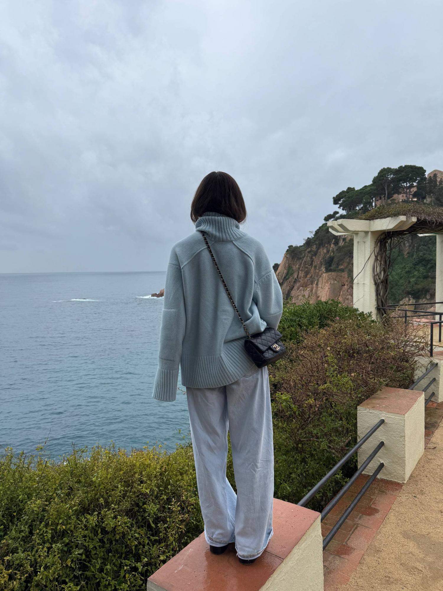 До светра Катерина підібрала світлі джинси палаццо вільного крою. Поєднання широкого верху й широкого низу - сміливий прийом, який цього сезону активно використовують інфлюенсери.