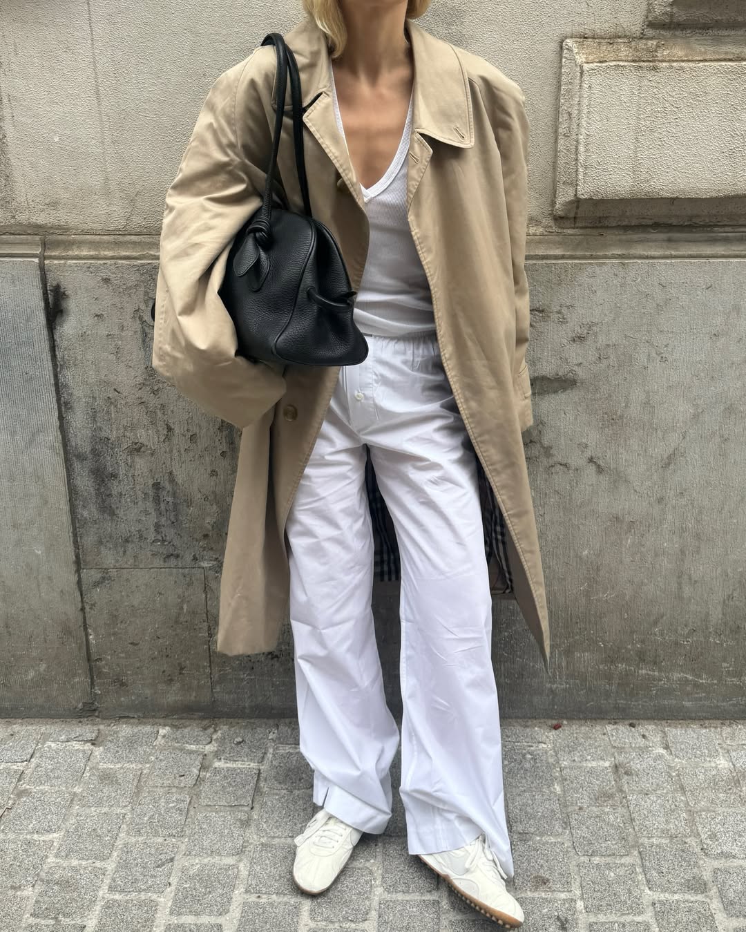Кросівки та джинси кльош (фото: instagram.com/emmanuellek_) Тренч Тренч і кросівки - це класика, яка щороку отримує нове прочитання. У 2026-му акцент зміщується на вільні силуети та легкі тканини. Довгий тренч у поєднанні зі світлими кросівками створює елегантний образ. Такий дует підходить як для повсякденних виходів, так і для більш зібраних образів. Додайте сумку структурованої форми - і отримаєте завершений сучасний лук.
